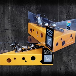 Enhance your cheese platter with this fun and functional decoration. Press the pins into the cheese and hold the mice while you slice, avoiding contact with the food. An entirely food friendly item made from zinc and plated with antique nickel.