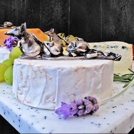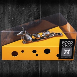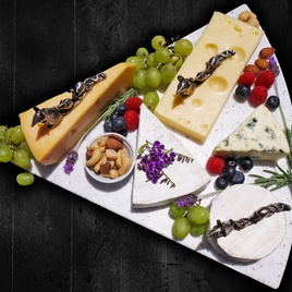 Enhance your cheese platter with this fun and functional decoration. Press the pins into the cheese and hold the mice while you slice, avoiding contact with the food. An entirely food friendly item made from zinc and plated with antique nickel.